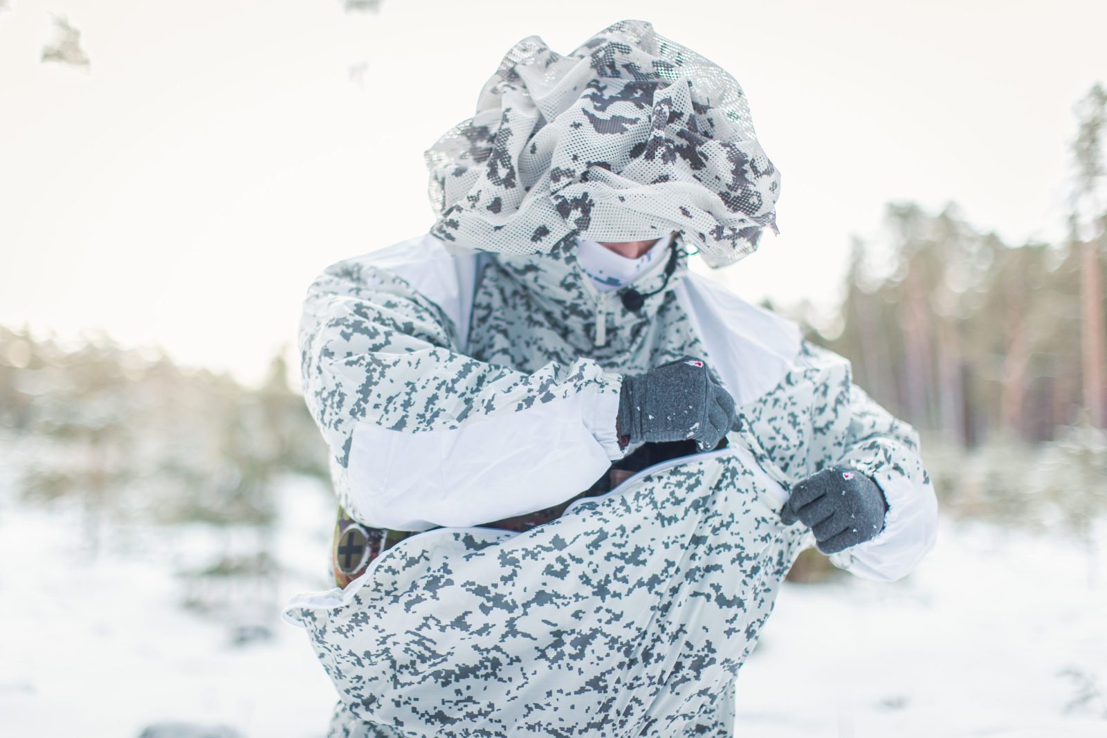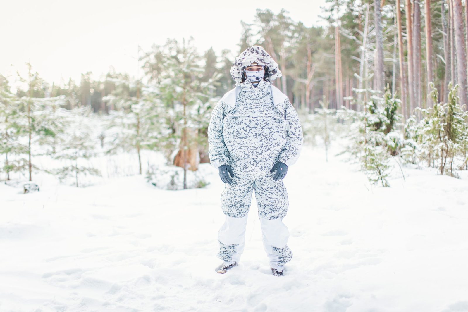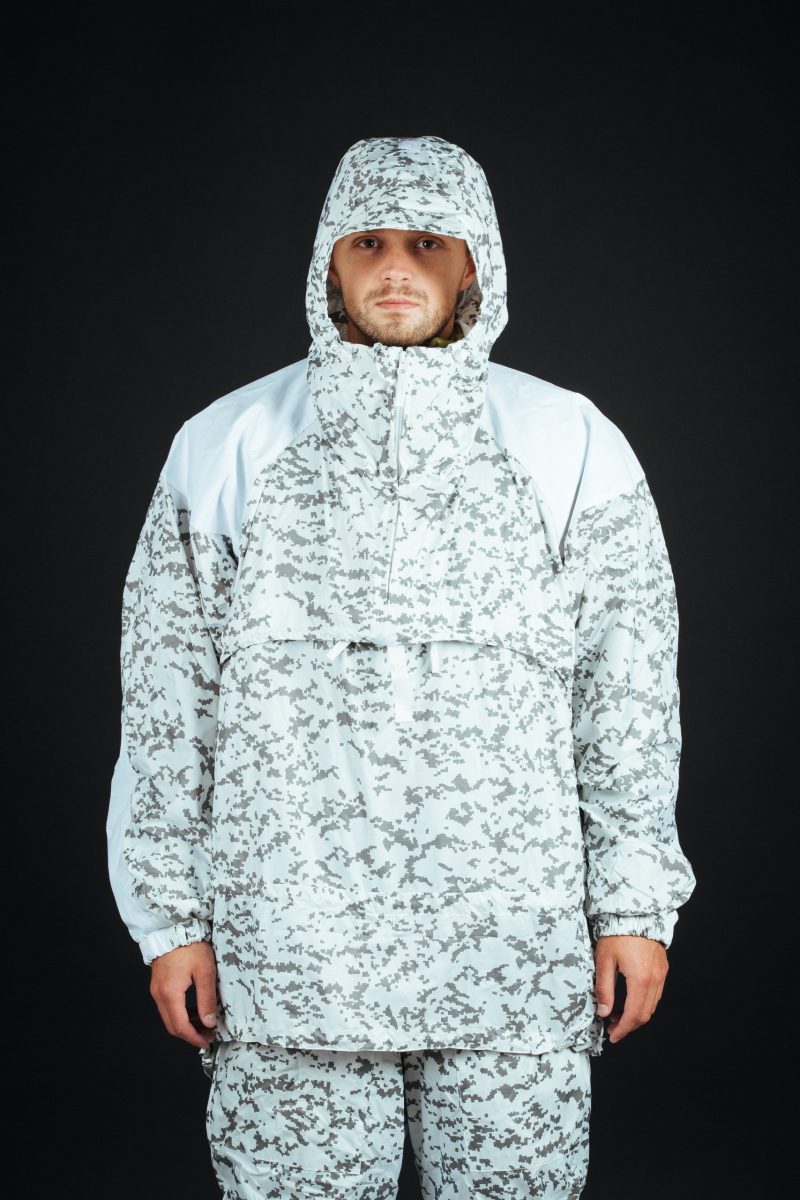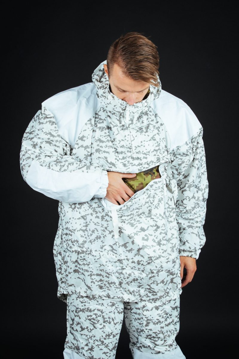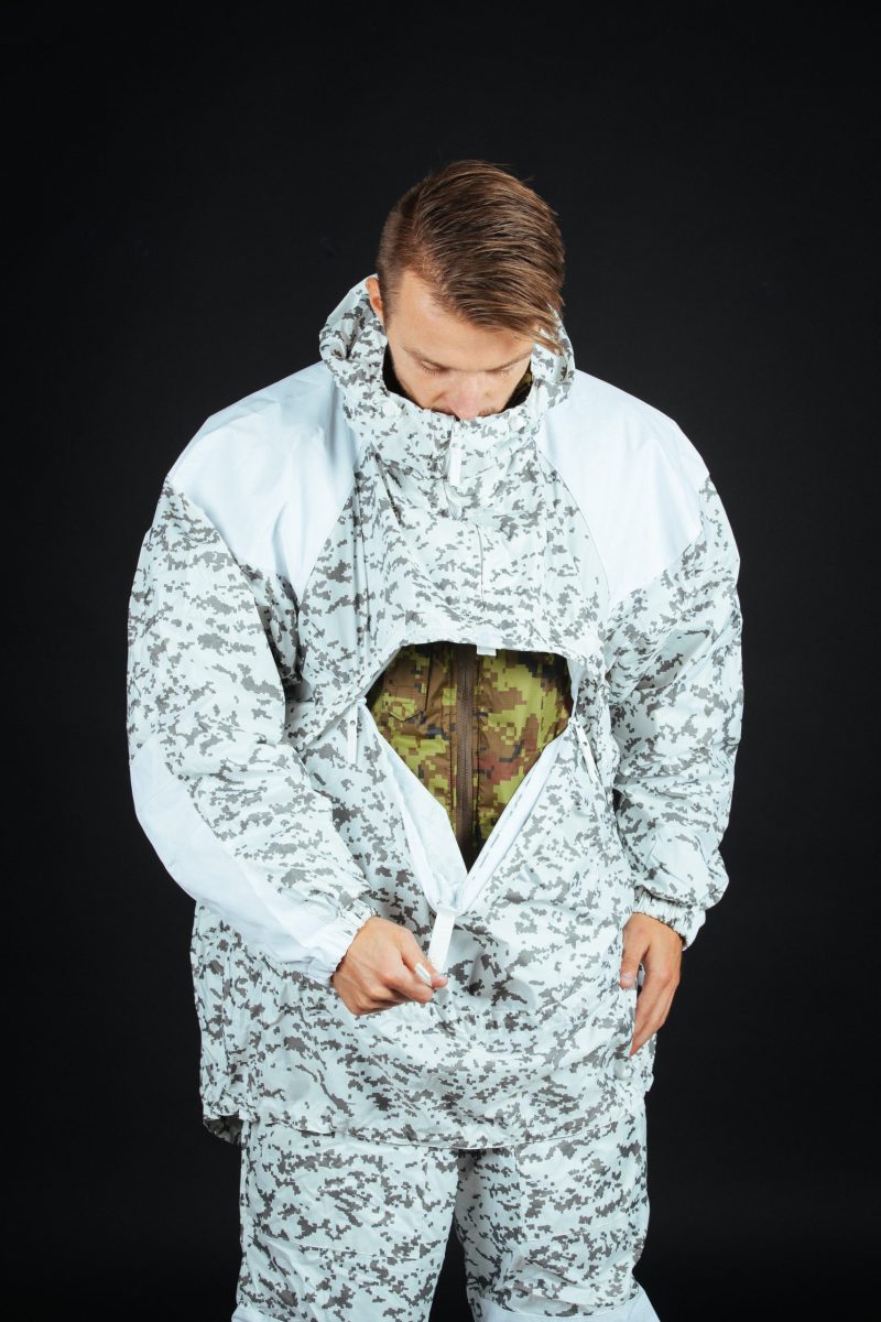 For the best camouflaging results wear an anorak together with the winter camouflage pants.