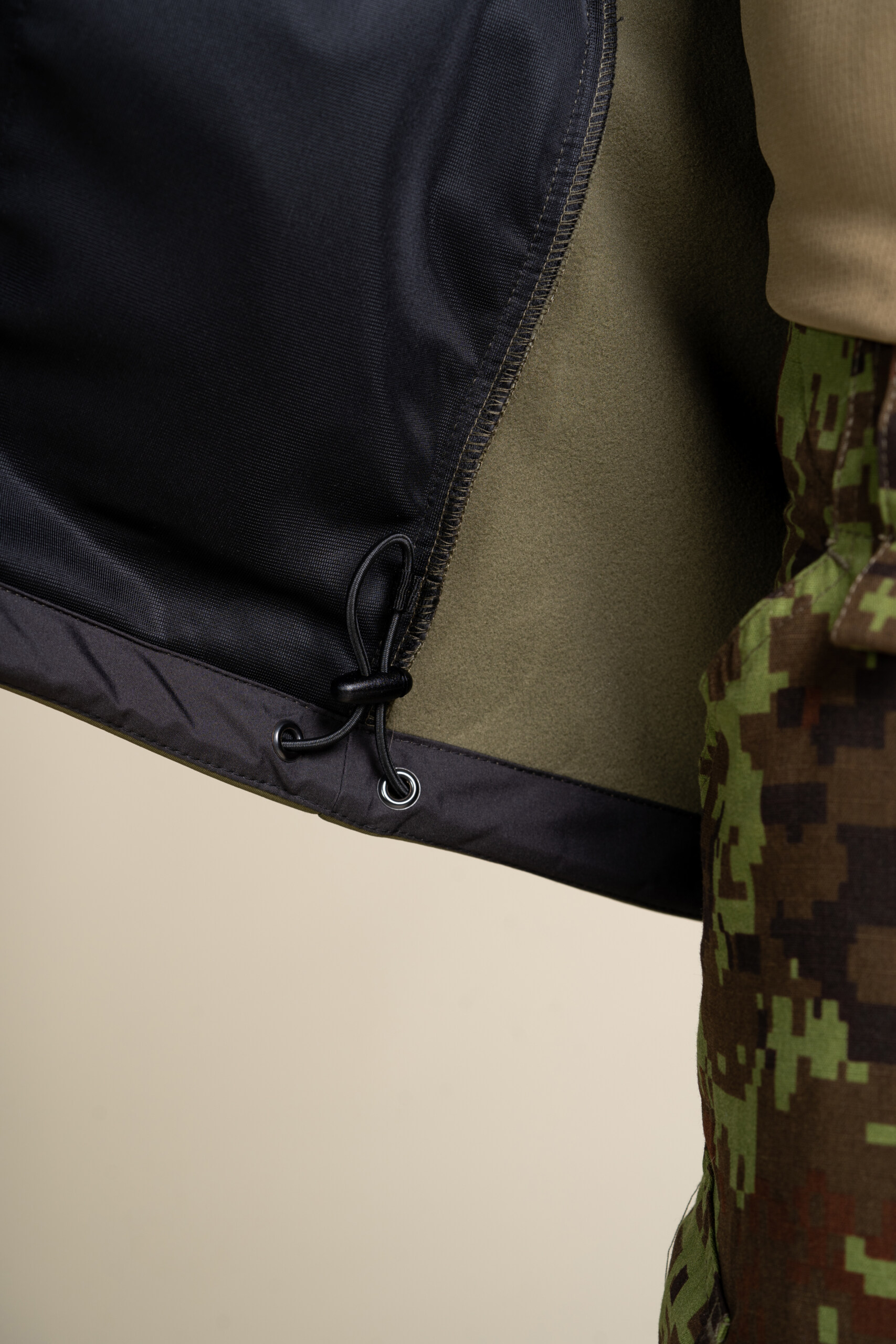 - Toote alläär ja varruka alläär seespool tugevduskangast.
