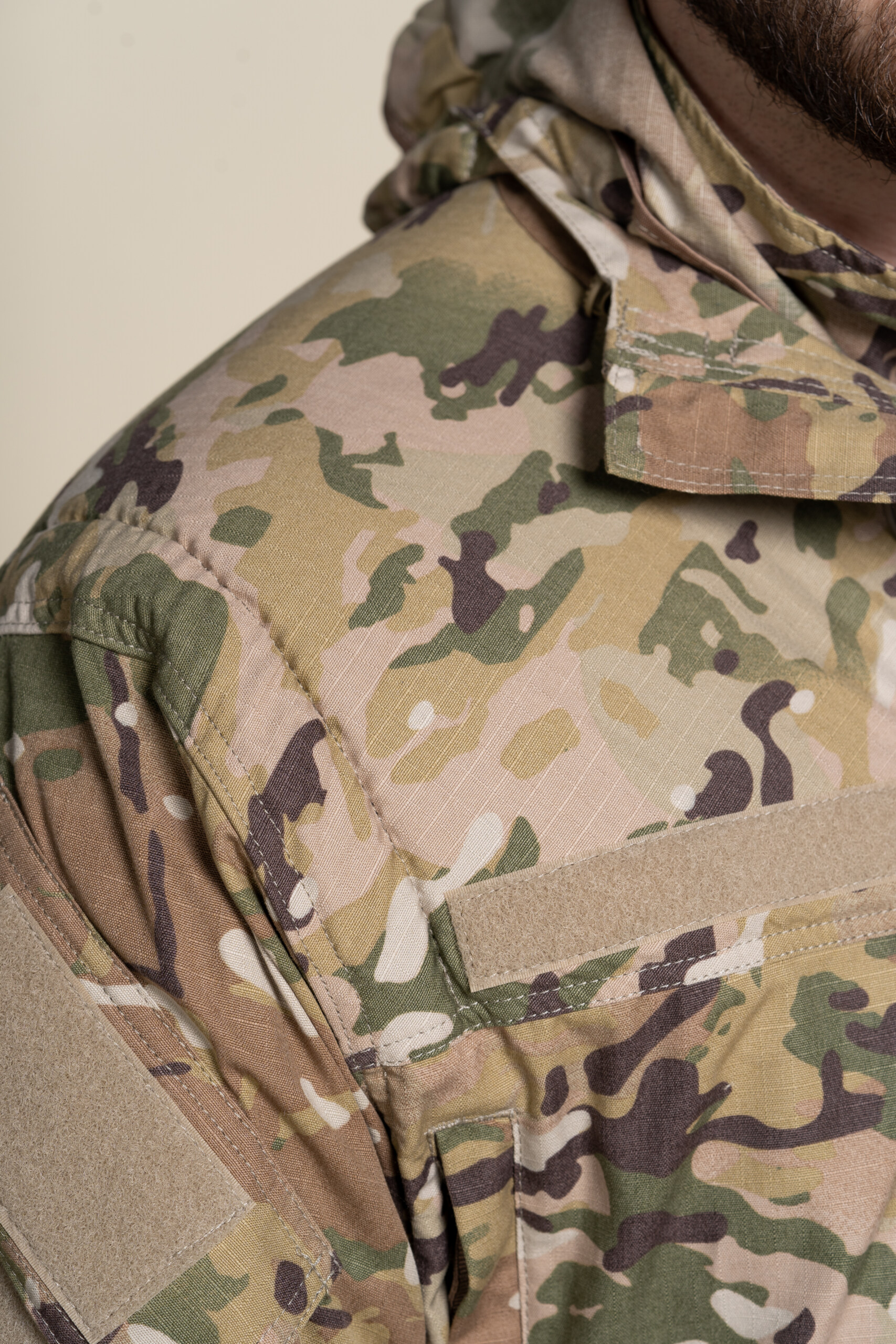 - Põhimaterjal – 55% polüamiid-cordura, 45% puuvill RIPSTOP kaaluga 185 g/m².