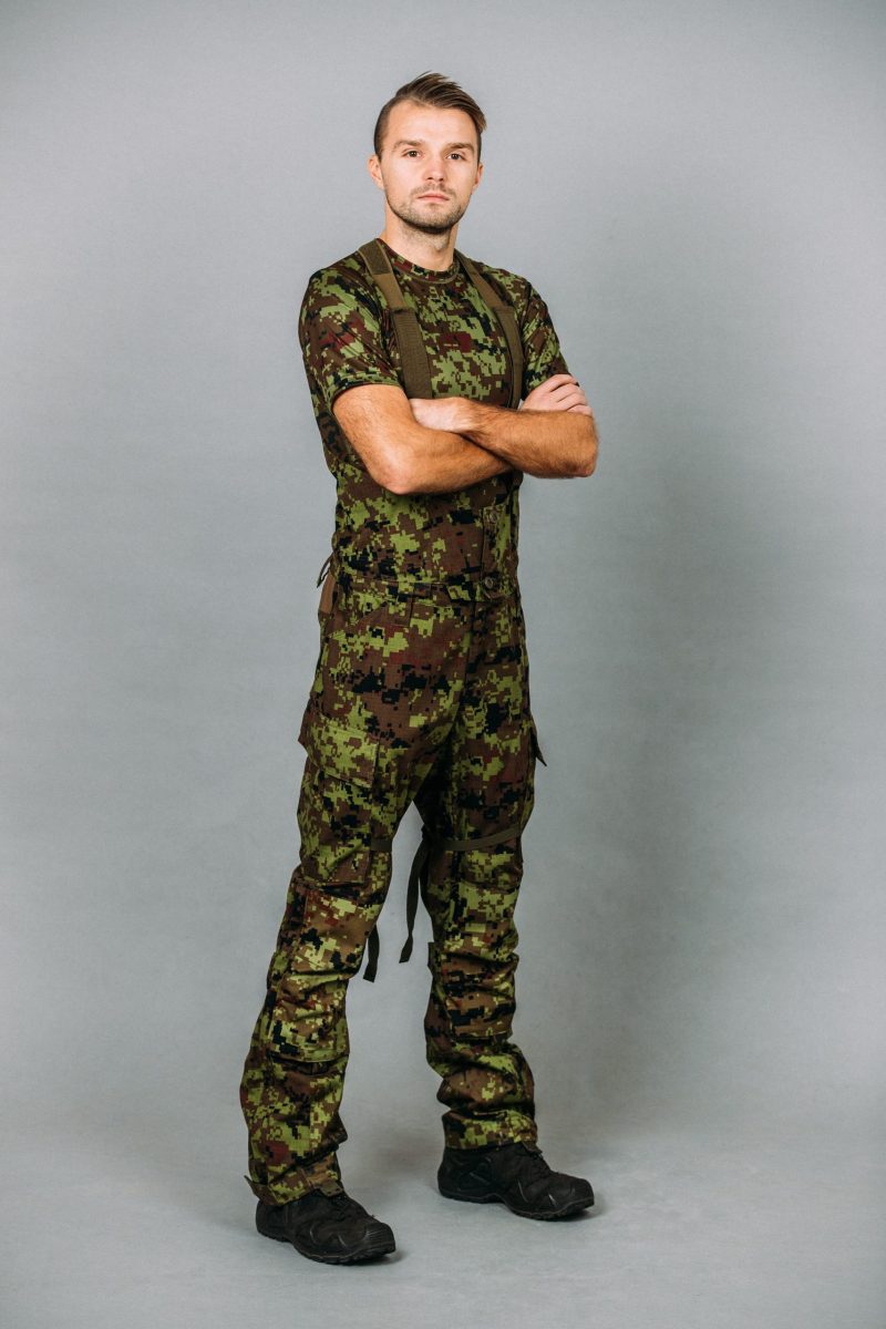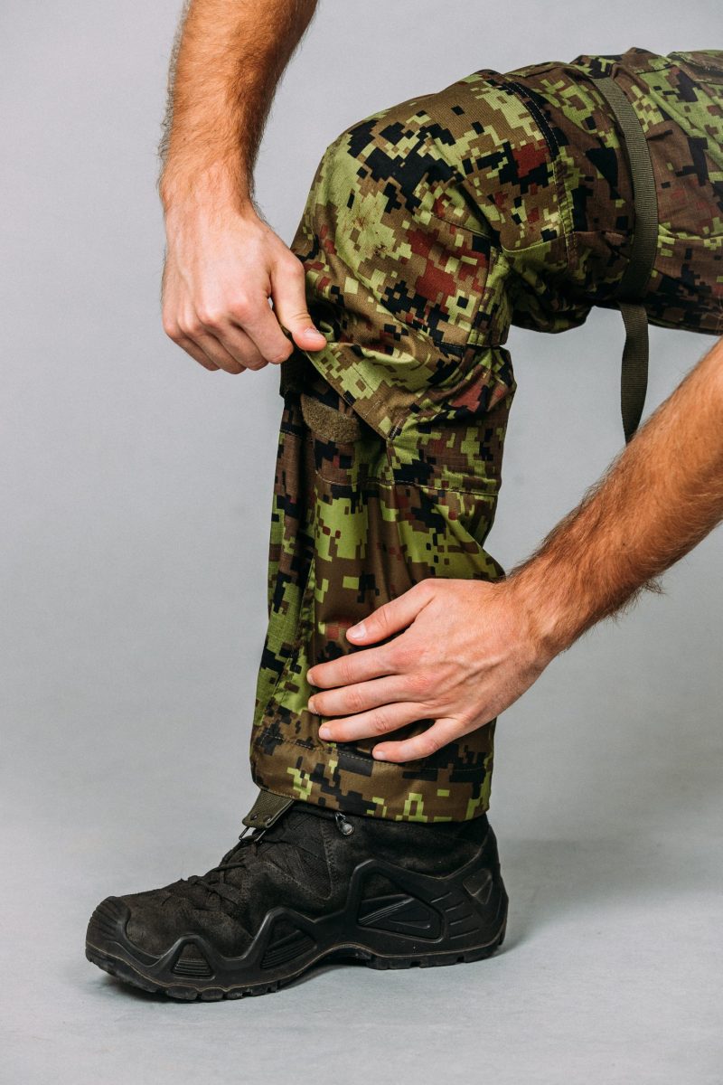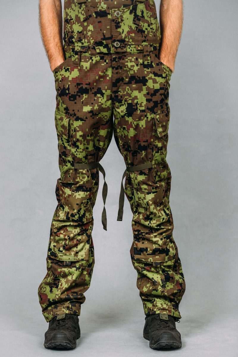 - Topeltklapiga ja nööpidega suletavad reietaskud (mõlemal reiel)