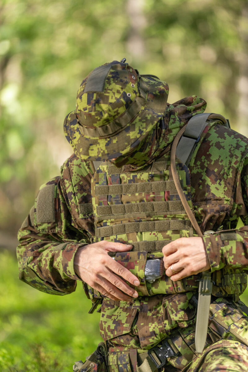 - Kott on tekstiilkinnituse abil kandesüsteemi/ballistile vesti külge kinnituv.