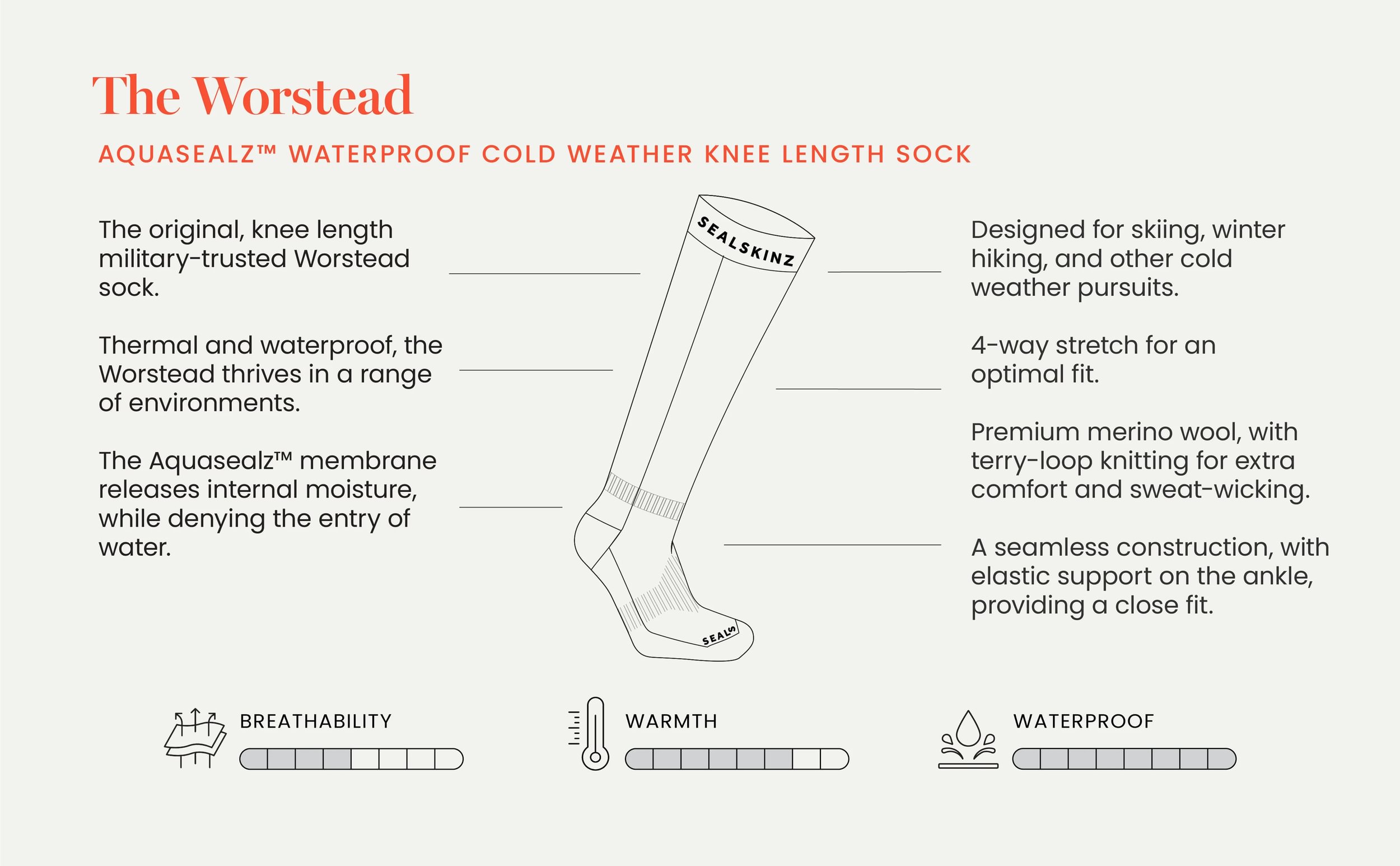 - Keskmine osa – Aquasealz™ 100% veekindel hüdrofiilne membraan laseb niiskuse soki seest välja.